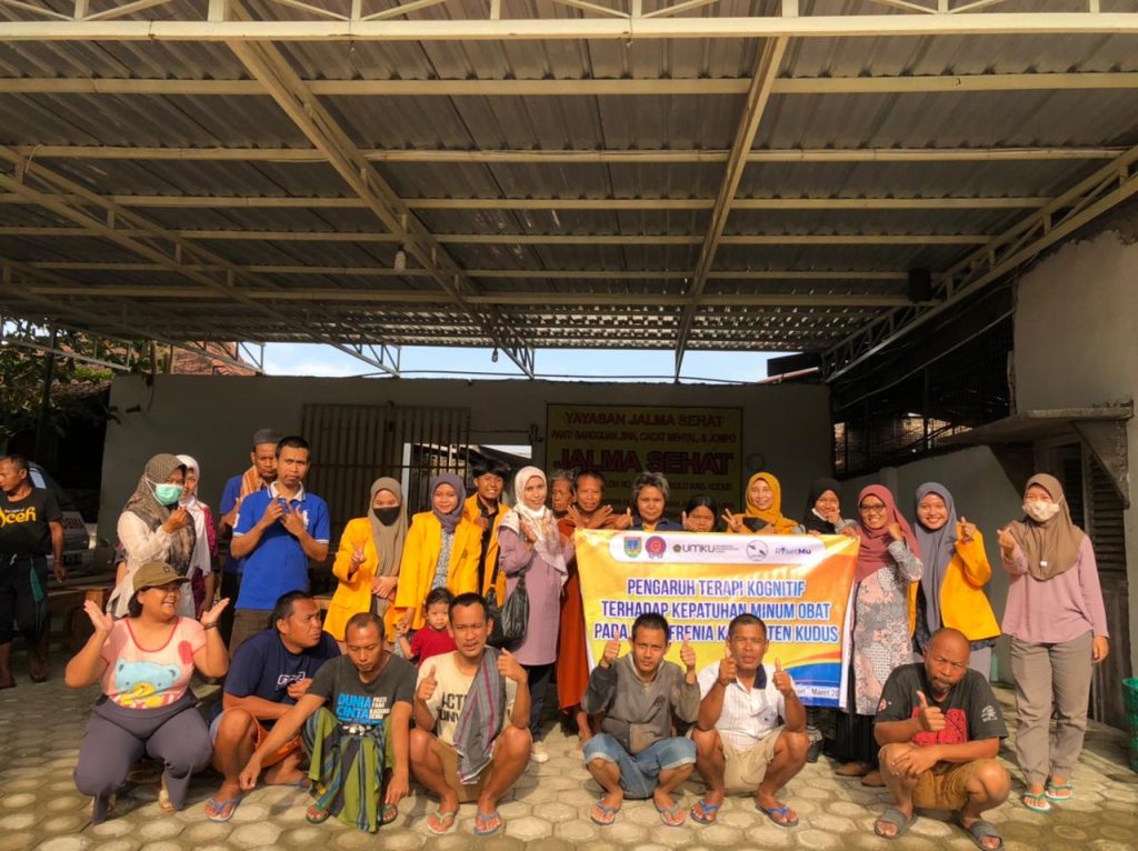 Berdasarkan fenomena tersebut, salah satu perawatan yang dapat dilakukan yaitu dengan cara pemberian obat bagi pasien skizofrenia. Tetapi dalam kenyataanya, pasien skizofrenia sangat sulit untuk dapat minum obat secara teratur. Oleh sebab itu, Tim dosen Universitas Muhammadiyah Kudus (UMKU) bersama mahasiswa keperawatan UMKU memberikan terapi bagi pasien skizofrenia dengan “terapi kognitif”.