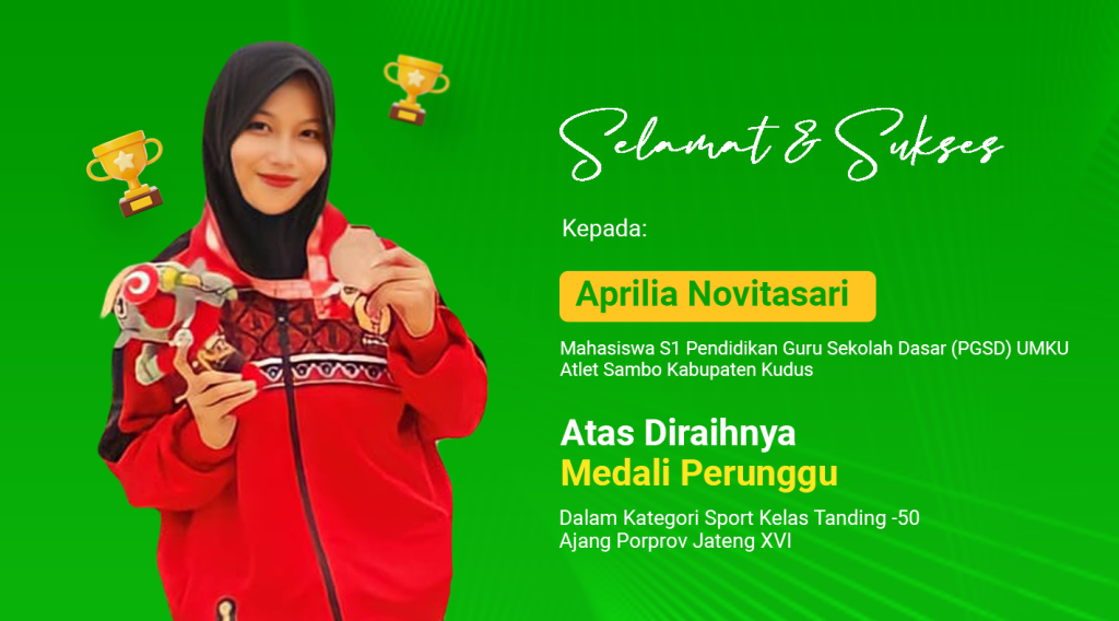 Luar biasa, mahasiswa Prodi S1 PGSD Universitas Muhammdiyah Kudus harumkan UMKU dan Kabupaten Kudus. Aprilia Novitasari berhasil meraih perunggu pada ajang Porprov Jateng 2023.