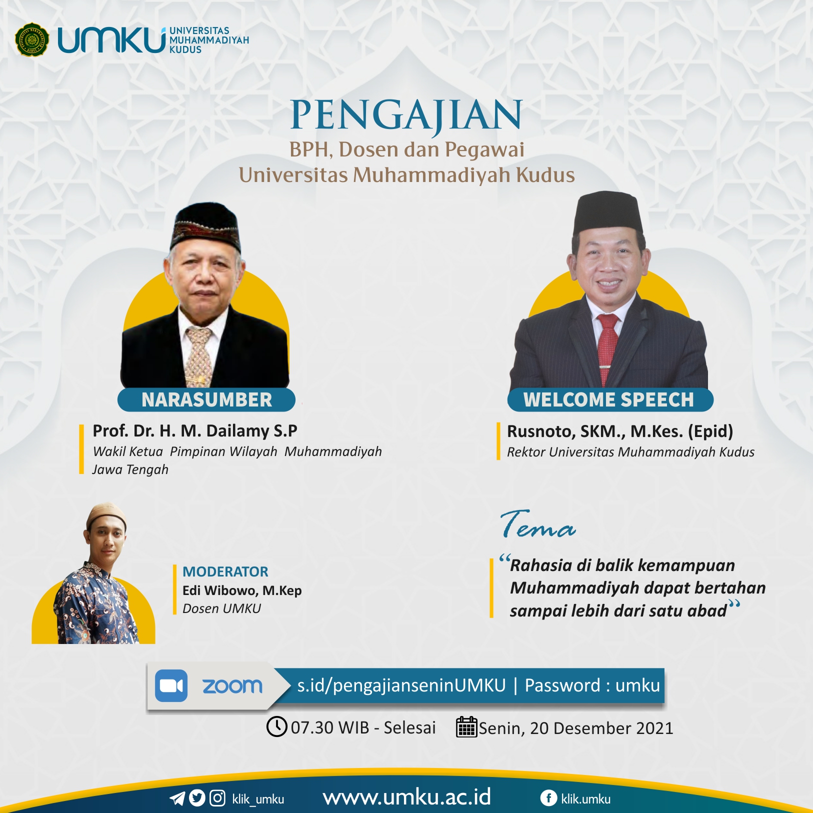 Resepsi Milad Muhammadiyah Kabupaten Kudus “Optimis Hadapi Covid, Menebar Nilai Utama” Nadya Wahyu Permata 29 November 2021